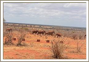 Soon another wild herd of elephants arrived and Wasessa moved in front in an attempt to block them from interacting with the orphan herd. However the commotion of the two wild herds in search of ample drinking space scared the orphans away, who moved out of there to continue browsing for the rest of the day.