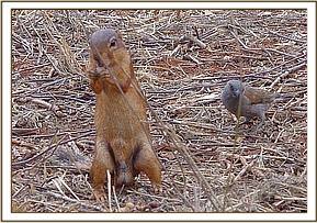 Emily came to the stockade at 10 am to have a drink, but she came without Sweet Sally and Aitong. She was given her share of Copra cake and went off towards the airstrip. She never did meet up with the babies on this particular day, as they were further North on the Northern side of Msinga Hill. Mweiga could not keep up with their blistering pace, so went about browsing slowly at her own pace. Both Mweya and Sosian ensured that they stayed back to browse close to her. After the midday mudbath Nyiro charged and chased off a squirrel who was feeding on a birds eggs at 11.57am. The squirrel was feeding on the eggs while the bird watched helplessly. Once Nyiro saved the day the bird immediately went to assess the damage done, and fortunately found four of the six eggs still intact, which she immediately perched back on to protect. Nyiro did not charge the bird, obviously completely aware of the situation.