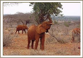 The usual feeding routine on Masinga hill in the morning. Mpala and Solango challenged each other in a pushing game at midday. This game came to an end when Mpala got defeated and in desperation went ahead biting Solango’s trunk. Their friendship ties got broken temporarily and a tough fight broke which eventually saw Mpala dashing off. A wild group joined the orphans for a drink and mudbath. There were three big cows in the group and two grown up daughters and a calf. One of the cows had huge tusks which scared the orphan’s alittle and they were reluctant to freely mix with them. The orphans stood aside to watch them taking a bath and escorted them for about a kilometer and turned back while feeding towards Masinga hill. They spent the afternoon session feeding on the slopes of the hill.