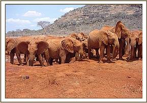As usual the orphans were happy to be out in the morning, and the rushed off feeding on the foot of Msinga hill towards the Northern side. They never went up the hill in the morning but Mweiga who was feeding on the lower reaches of the hill took Sosian with her and slowly sneaked off toward the mudbath so as to be first for her bottle of milk. On realizing that Mweiga was missing all the other small babies went rushing to investigate and ensure she was all right.