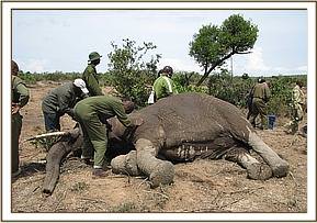 Treatment of a wounded elephant in Ol Donyo Rasha area, Narok.