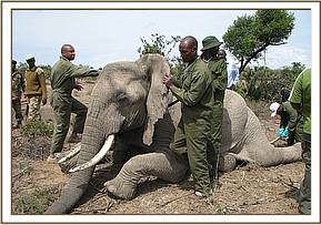 Treatment of a wounded elephant in Narosura area, Narok.