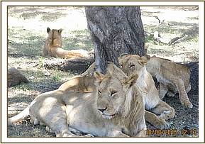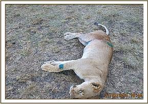 Reversal was achieved by intramuscular administration of 15mgs Atepamezole hydrochloride one hour after immobilization. The lioness woke up after 20 minutes but stayed for sometime on that spot. The rest of the pride members closed in to provide protection.