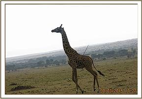 This giraffe was seen with a spear sticking out of his upper left flank by Olare Orok Conservancy rangers. They informed the management who called The Mobile Veterinary Unit for assistance.