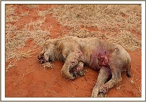 It was reported by KWS rangers that a lion had been struck and killed by the new railway near Bachuma area of Tsavo East National Park. The Vet team visited the site and found the big male Lion carcass crushed, with no chance of surviving the accident. This comes barely one month after a lioness was hit and killed by the new train near the same area. Cases of wildlife being hit by the new railway are on the increase despite the fence being erected on both sides of the railway line. There is need to strengthen this fence along the railway line, ideally by electrifying the fence which would stop the wildlife from crossing the tracks.