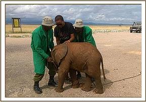 A young elephant was reported abandoned in Amboseli ecosystem in a swampy wet area around Risa village by big life rangers. The mother could not be traced hence reunion was impossible. A decision was made to relocate him the DSWT stockade at Nairobi National park for care and nurturing.