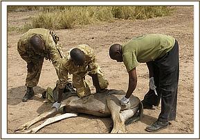 From ante-mortem examination she seemed to have had a long standing condition affecting her health performance. The flesh wound during treatment was ruled out as cause of her ill health and so was the scar during the postmortem. Her health depicted poor performance due to severe emaciation and dehydration. All these were supported by her failing heart which depicted congestive heart problem. She could not keep up with the pace of the others hence her isolation. She could not look for browse and water during the prevailing dry season thus her poor general body condition.