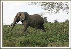 The elephant was sedated using 14mgs Etorphine and 1000 I.U Hyaluronidase in 1.5ml dart propelled by Dan –Inject darting system. Induction took eight minutes and covered substantial distance because he was afraid and aware before darting. He assumed a dog sitting position but was pushed onto left recumbence by the help of a strap anchored on the vehicle and to the right tusk. Its right ear was used as a blind fold to cover the right eye. The trunk was immediately straightened and kept patent by the piece of stick across the rostral opening.