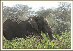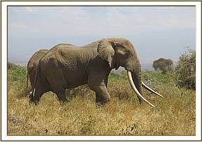 This particular candidate is renowned for his long and heavy tusks hence under active monitoring after recently being treated for a spear injury. Tm had not been sighted for over a month then he resurfaced at Kimana Sanctuary in the company of three other males. All were found browsing on acacia shrubs headed for water at the nearby stream.