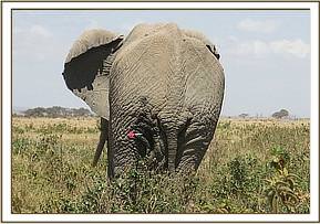 This elephant was reported by Big Life rangers as being unable to move and with a wound on the left rump dorsally near spine. It was in the company of a daughter between one and two years old.