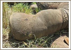 The elephant was injected with 100ml Oxytetracycline, 2 vials of Dalacin and 100ml Dexamethasone Sodium at different sites intramuscularly.