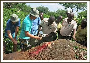 The elephant was turned using a vehicle and other wounds treated in a similar manner.