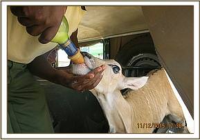 Physical restraint was used due to the age of the eland. Using a landcruiser the eland was relocated to the rescue centre for further nurturing and care.