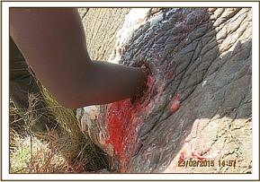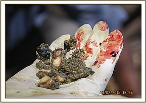 Topical antibiotic cream and green clay was applied into the wound to facilitate healing and avoid infection. Finally, the elephant was injected with 100 ml Amoxicillan, 1200 mg Clindamycin and 100 ml Dexamethasone at different sites intramuscularly. The entire operation lasted about 25 minutes.