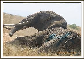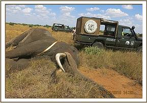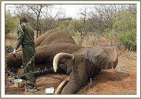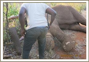 The elephant was retreated one week after his initial treatment. During this time, the male elephant had grown extremely weak, had shown no signs of improvement, and had barely moved 100 meters from the point of last treatment. A decision to euthanize the elephant was made, but before it could be done and due to his poor physical condition the elephant died while under anaesthesia. The tusks were removed and handed over to KWS for safe custody.