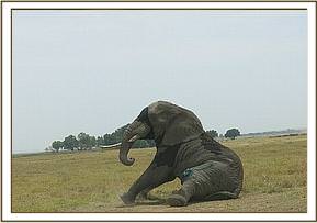 Reversal was achieved using 54 mgs Diprenorphine Hydrochloride, which was injected into the ear vein. The elephant was awake after 6 minutes.
