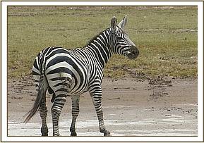 The Amboseli Mobile Vet Unit found an isolated grazing zebra while on usual patrol within the park. This elicited our interest as to why the zebra was alone. We urged it to move only to realize that it was lame on the left hind limb. The limb was heavily soiled with sticky mud obscuring any meaningful observation. The lameness was severe necessitating immobilization for effective examination of the swollen limb.