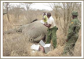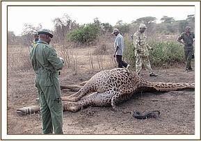 Herders reported on 25-07-14 at about 1.30pm to the KWS security personell of having spotted a dead elephant within the area of Satao. The management then reported to the veterinary team and also dispatched a team of rangers to the scene. The team found the carcass intact and embarked on postmortem and removal of tusks for safe custody. The tusks were then delivered to the Amboseli N.P headquarters.