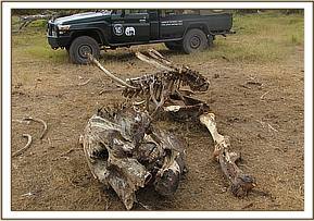 The elephant had been lying on a bare ground for quite a considerable period of time. Both elephant tusks were present. The KWS security personnel removed the tusks with ease. The carcass had been mauled by scavengers and only disintegrated parts of the skeleton could be seen suggesting that the carcass could have been there for a estimated ti me of 1 – 1.5 months old.