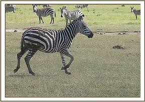 It was immobilized using 2mgs Etorphine and 35mgs Azaperone in 1.5cc dart topped up with water for injection. A vehicle was used to approach the animal which was among other zebras grazing on the expansive Park savannah. The other zebras were not startled by the vehicle approach or post darting. As the zebra begun to exhibit sedation signs, it separated itself from the group and assumed right recumbence after five minutes.