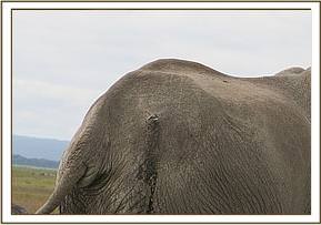 The animal was seen on 13/6/2017 by KWS rangers on patrol and then by a KWS research officer on 14/6/2017 who quickly reached for the Vet attention. The Vet Unit attended to the location with the Amboseli Elephant Research Trust to carry out a review. It was observed that the animal had a full tummy and was ambulating well. It was noticeable that the muscle cover had improved since the last treatment two weeks previous. She was urged to ambulate and there was very little discharge from the injury site. It was decided to review her again after ten days and if there is any discharge from the wound she will be immobilized to further drain the wound.