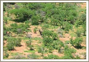 On the ground we spotted the Big Life ground team and they showed us the way the elephant had gone. We searched in vain for it but we were forced to land and reassess. After further guidance we went in the air again and we spotted the elephant about 800 meters away. It kept walking calmly even after seeing the chopper. We examined it keenly as it walked and browsed and established it had no condition necessitating any clinical intervention. There was no lameness observed, no swelling, no discharge or favouring of any limb. We came to the conclusion that the ground team was on the track of the wrong candidate.