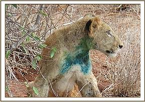 This lion was reported by Tsavo East KWS radio room to have been injured by buffalo while on a hunting mission. The Amboseli Vet Unit rushed to treat the lion because the Tsavo Vet Unit was not within the area of jurisdiction.