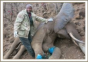 The elephant was revived with 36mgs Diprenorphine Hydrochloride into jugular vein. It was completely revived in three minutes and walked away.