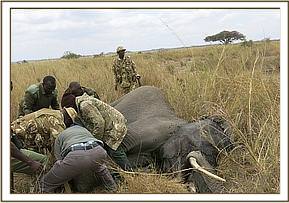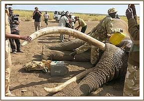 It was established that the carcass belonged to the previously treated candidate who succumbed to injuries thereafter. The fracture on the left hind limb was seen as severe lameness (before death) of the affected limb. The skin break at the right gluteal area and sole perforation on the same limb conformed to antemortem pathology witnessed during treatment. The ivory had been poached possibly by poachers who trailed the animal to its death location or someone who bumped into the carcass by chance. Serengei Ranch is vast and thickly forested. It is patrolled by game scouts who patrol on foot making effective coverage almost impossible. This could have contributed to lack of timely spotting of the carcass there before.