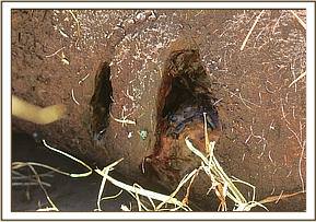 -At the lumbar area of the spine there was a skin break depicting septic wound. It was pronged and had not penetrated into muscles.