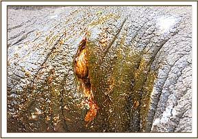 It was reported by Sanctuary rangers. The elephant had previously been attended to on 8th August 2016 due to an abscess on the lower side of left belly. The swelling had subsided but there were still evidence of creamy discharge hence need for review