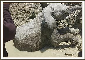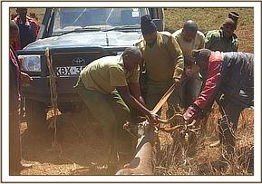 Immobilization was dangerous and not an option since there was a possibility of the elephant drowning just in case it was fully sedated inside the waterhole. A quick thought was made to pull it out with the ropes and straps anchored on vehicle. An attempt was made to pull but the elephant was very heavy and risked strangulation. This was not to be.