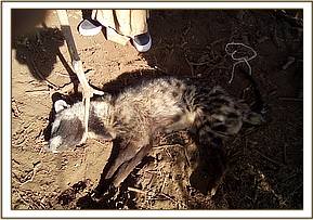 All carcasses were relatively fresh presumed to be about forty-eight hours old. All were virtually predated on completely and they were within same locality separated by a distance of a hundred meters from one another on different directions. All seemed skinny as depicted by noticeable bony prominences.