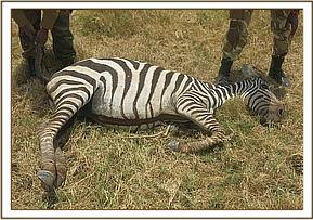 On 17/09/2017 a patrol was carried out and it was noted that the zebra had succumbed to shock as a result of severe anemia.
