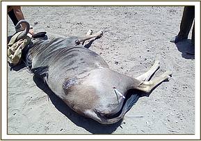 The dead eland report was made to the Mobile vet unit by Tourism Warden Amboseli National Park.