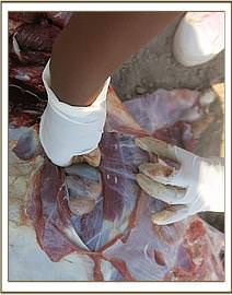 Whole carcass was thoroughly examined and important findings were from the liver and the kidneys. The liver appeared to have distended gall bladder. Further incision into the parenchyma particularly at bile ducts three stout ‘flagellated’ worms was recovered. The liver tissue was firm indicative of slight cirrhosis. Both kidneys were not easily appreciated as having cortex and medulla. Capture was sticking and not easy to pull but more importantly were the fluid filled sacs located at each pelvis. Each sac had whitish inclusion thus appearing like bladderworm. Dentition appeared normal and with two corner incisors still being temporary/milk teeth indicative of young adult ram.
