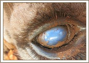 Both eyes were retrieved from the carcass for further examination. Both had complete corneal opacity appearing grayish.