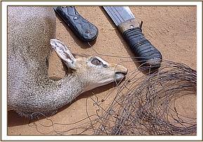 A total of 655 snares were lifted and one poacher was arrested, the results were expected as the area is still very dry and one can say that these findings will stay the same until the rains come. For this operation, the team concentrated along the river because most of the water holes are dry, and this is where the wildlife congregates. The operation was timely as we intercepted many poachers by removing their snares shortly after they had been set. Most of the snares were fresh but they had not caught anything by the time we had arrived. One poacher was arrested 13km from the boundary deep inside the park; he was from Kitui but living in Darajani area. We confiscated 6 arrows, a bow and 77 snares from him.
