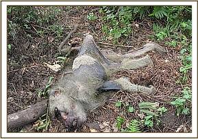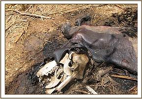 We visited both these areas after receiving information that an elephant had been killed by poachers who had managed to escape with the tusks. We found the elephant carcass which had been covered in branches in an effort to conceal it.