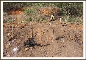 While patrolling at Mangelete an elephant was found that had been killed by poisoned arrows. The elephant had been dead for about four days. While observing the scene an arrow was found next to the body and various footprints were also seen.