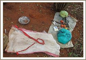 We were able to collect of total of 27 small snares during our desnaring activities in the Triangle. The team also came across 4 poachers who unfortunately spotted us before we saw them and thus were able to escape arrest. In their hurry to get away they left behind there possessions which included food stuffs such as maize flour, tomatoes and onions.
