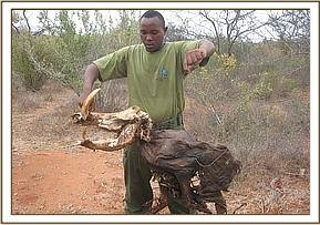 Kaluku / Kilalinda The Mtito desnaring team camped at Kaluku for the period of a week. The team working in conjunction with the Peregrine desnaring team patrolled the community area until we had to break camp due to the presence of Shiftas (armed Somalis) in the area. The shiftas had reportedly invaded a house bordering the park boundary 3 times in the same day. They ransacked the house, asking the occupants for food. Fortunately no one was injured. For security reasons we had to stop our patrols. We were however able to lift 17 snares before having to leave.