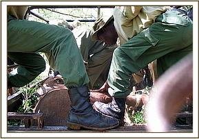 Observable Evidence During the months operation we discovered a hiding/resting harbor at Kanga that had fresh traces of fire. Destruction of vegetation was rampant in the Nguumo area, where we noticed that fire was being used to fell trees. At Kyosiani, we came across footprints that led out of the park. Upon following the footprints we came to a homestead where we found several wire snares and a blood stained jacket. At Ngiluni there was active charcoal burning and we found several sacks of charcoal that had been stacked together awaiting transportation to market.