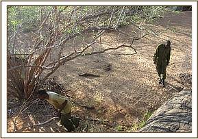 Kenani/Kanga Both of these areas border the Nairobi Mombasa highway and are poaching hotspots. We consider our monthly patrols to be incomplete if these areas are not visited. The poachers operating in these areas access them by train or other means of public transport. During our patrols we visited old hideouts and were able to arrest a poacher in possession of 4 rolls of snares.