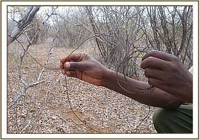 Mtito river circuit Due to the ongoing drought there has been an increase in the number of wildlife being brought into the park to graze. In order to evade arrest the cattle grazers run away as soon as they see us leaving the cattle to return home on their own in the evening. We lifted all the snares that we found during our patrols. Most of the snares we found targeted small game as the people setting them are probably the cattle grazers and they do not want to jeopardize harming their cattle by setting large snares.