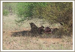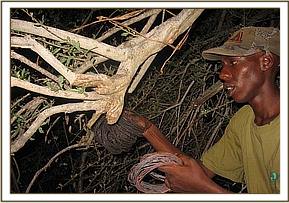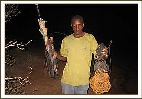 The Triangle and Mtito River: Over 100 snares were lifted during our patrols in the area most of which were collected after an ambush was laid to try and apprehend two poachers who had killed an antelope and six Dikdiks. We set up an ambush near the poacher’s hideout but were unfortunately seen by the poachers as they returned to their camp at about 9pm after checking on their snares.