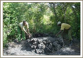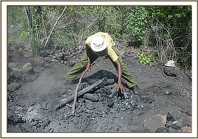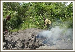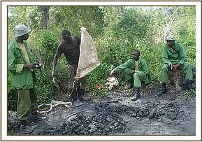 Charcoal kilns set at night were destroyed and tools confiscated as the wood was set on fire.
