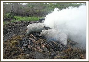 Less charcoal kilns were seen during patrols, yet fresh cut wood was observed. It seems some loggers have taken to carrying out their work during the night using the light from the moon when it is full.