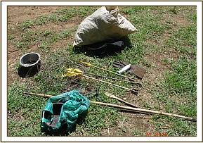 The Chyulu de-snaring team also visited Umani Springs, which is an area frequented by elephants. Here we were able to intercept two individuals on their way to an animal shooting platform near the pool. They managed to escape. However their tools, 45 snares, 2 bows and 8 poisonous arrows, which were dropped during the scuffle, were confiscated.