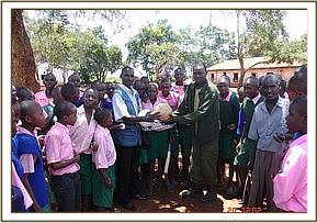 COMMUNITY AWARENESS This month the Chyulu de-snaring team visited two schools and presented sports equipment to the students of Kithyaso Primary and Ngiluni Primary.